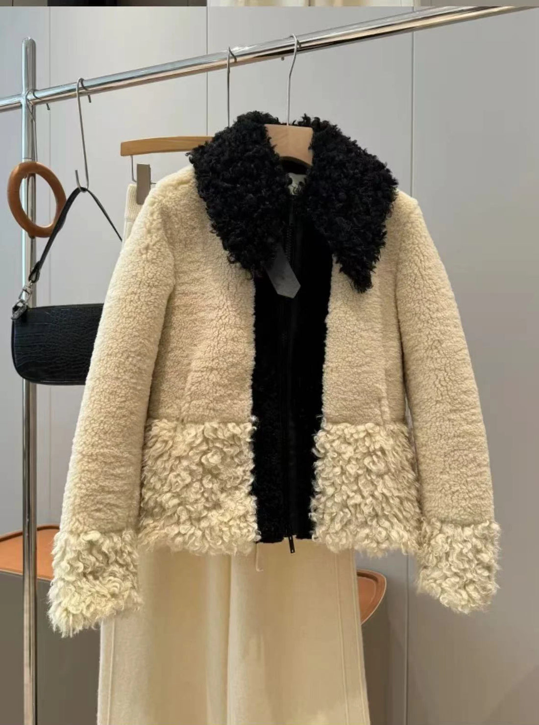 Vintage Faux Shearling Belted Jacket Clothium